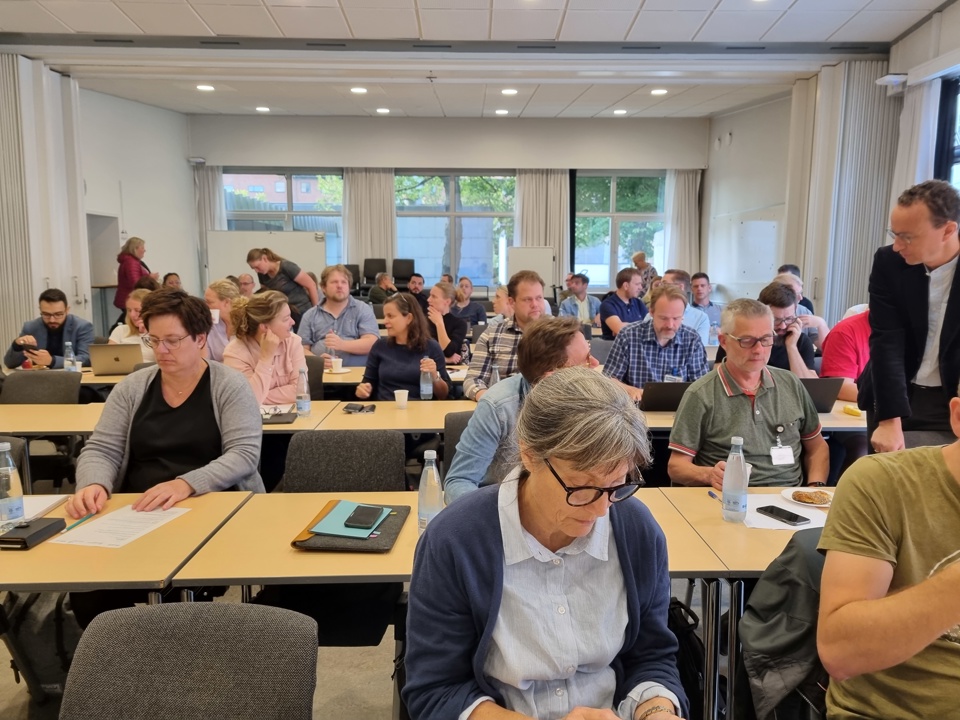 Der var 85 tilmeldte på dagen, og Bjarne Dahler-Eriksen, lægefaglig direktør på OUH, var glad for det store fremmøde: "På OUH har vi en stærk historie for at arbejde med innovation og nyeste teknologi inden for både telemedicin, robotteknologi og kunstig intelligens. Det kræver en stor indsats og stærkt engagement fra alle dele af organisationen og samarbejdspartnere, og jeg er glad for at se, at der er så mange interesserede i, hvordan vi kan anvende kunstig intelligens på hospitalet. Som universitetshospital undersøger vi altid de nyeste teknologiske muligheder, så vi fortsat kan tilbyde patienter og medarbejdere de bedste løsninger".