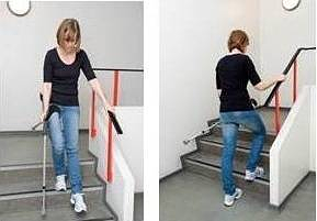 Flyt først det raske ben et trin op, derefter stokken samtidig med det opererede ben op.