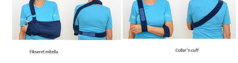 I de første to uger skal du bruge bandagen hele døgnet for at give skulderen ro. Den fikserede mitella sikrer at armen ligger tæt til kroppen.