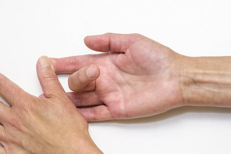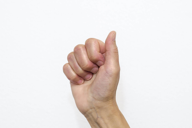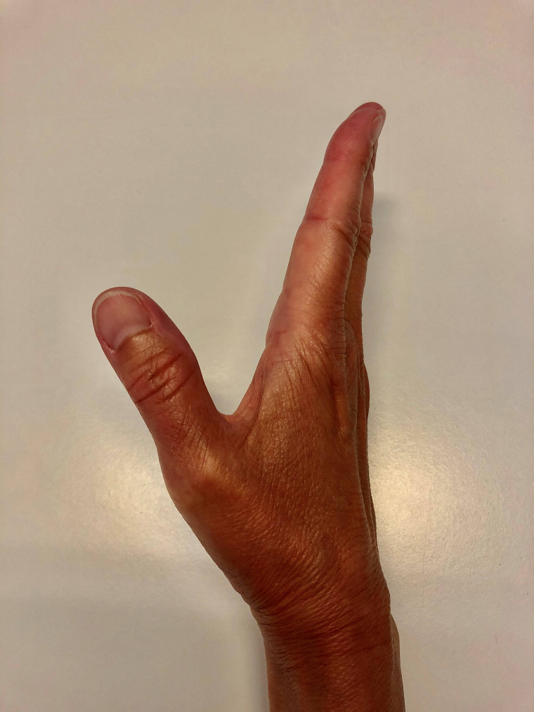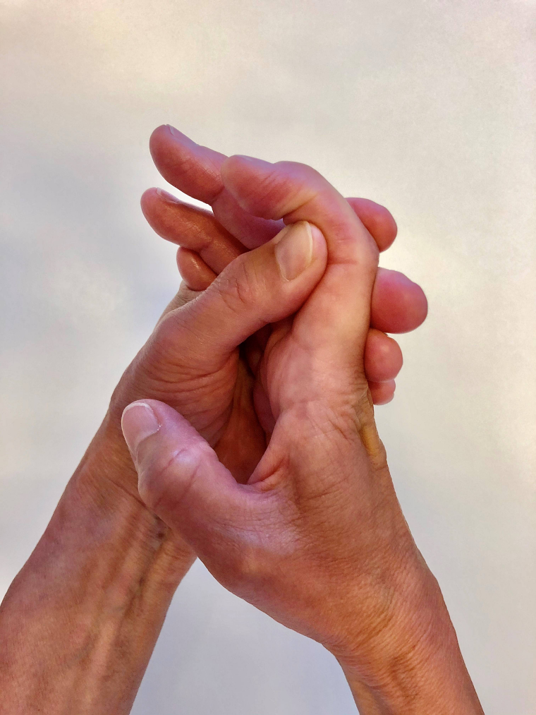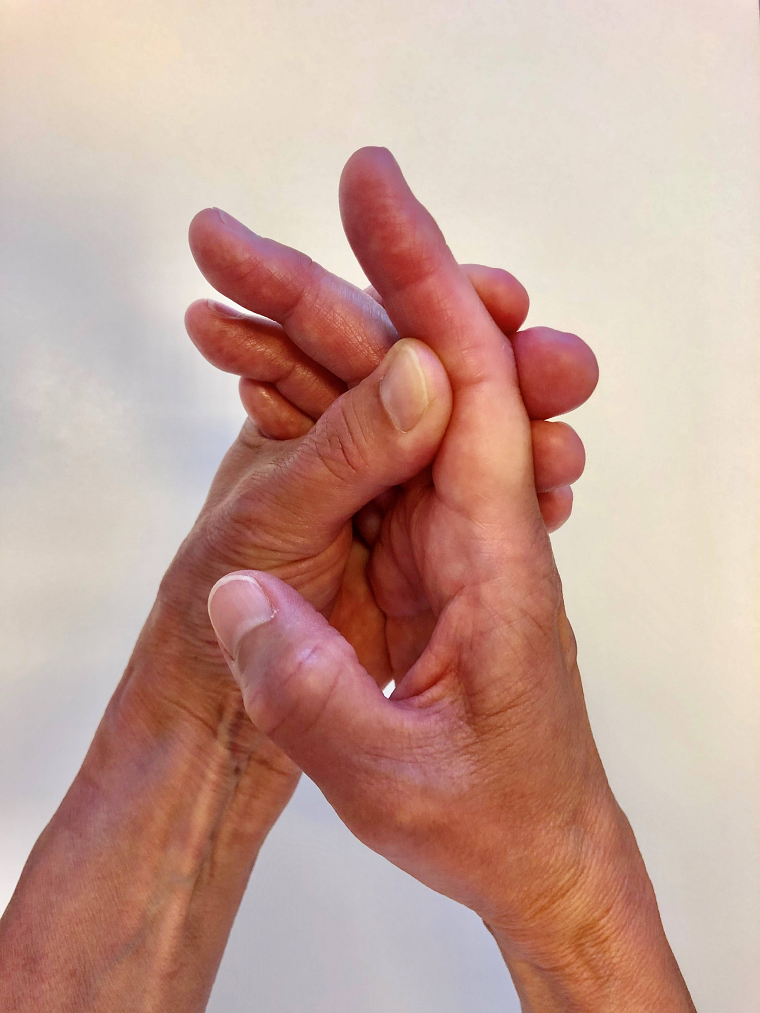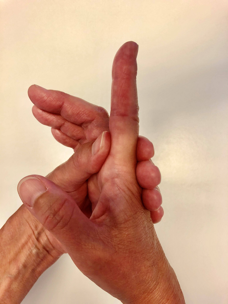 De fingre som ikke bøjer holdes strakte med den anden hånd.