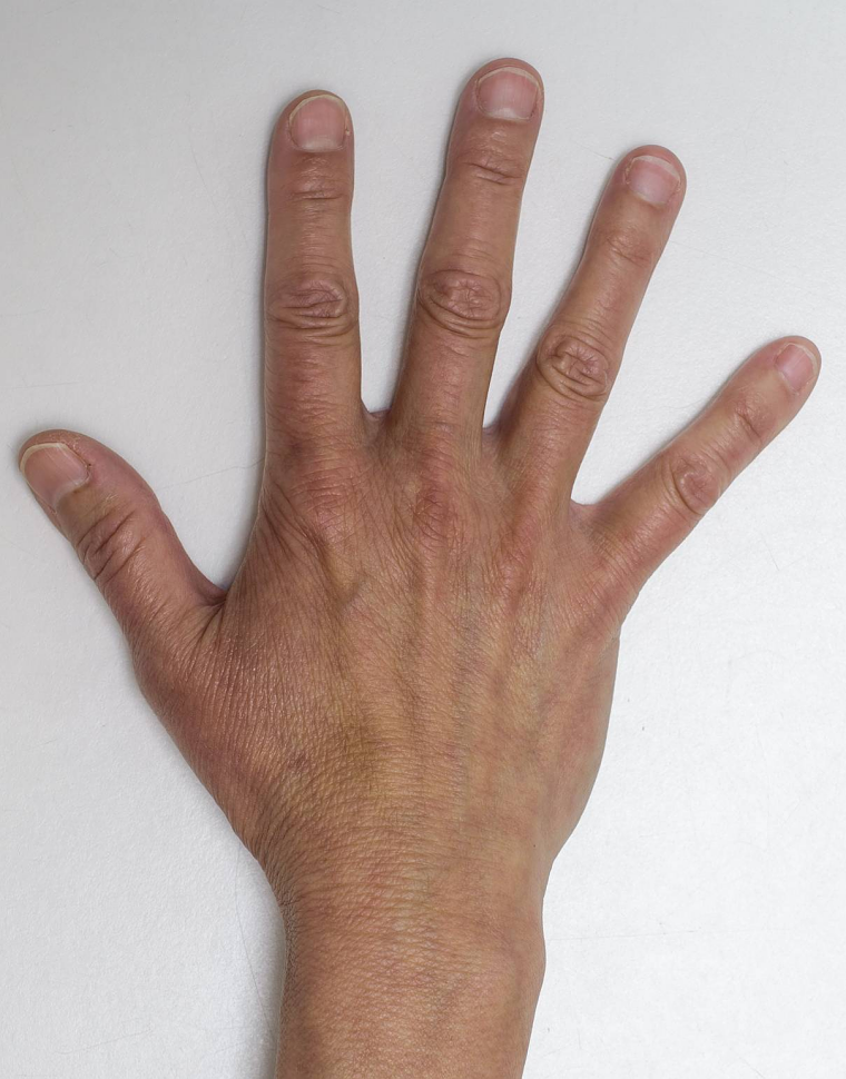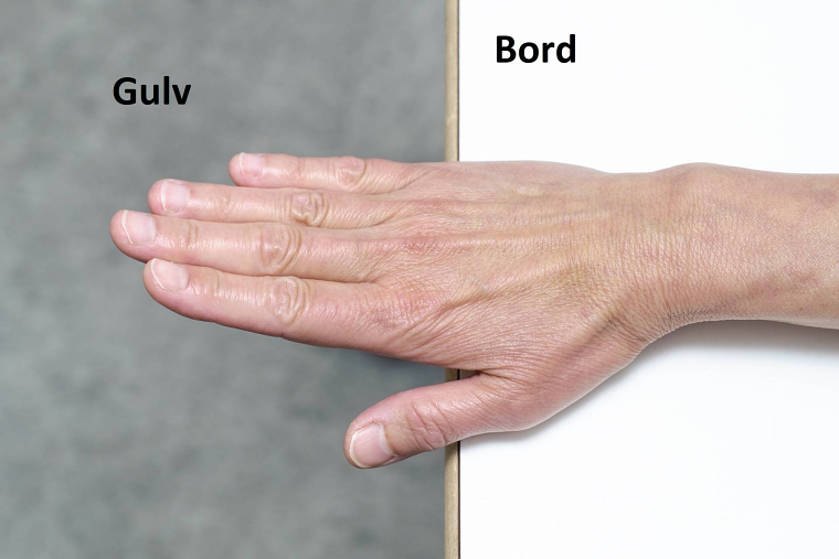 Læg din hånd og underarm på et bord med fingrene ud over bordkanten.