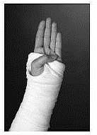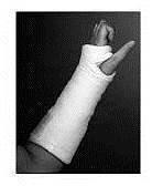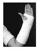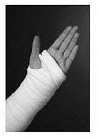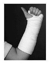 En nyopereret hånd beskyttes af en bandage, der holder større eller mindre dele af hånd, fingre og arm i ro.
