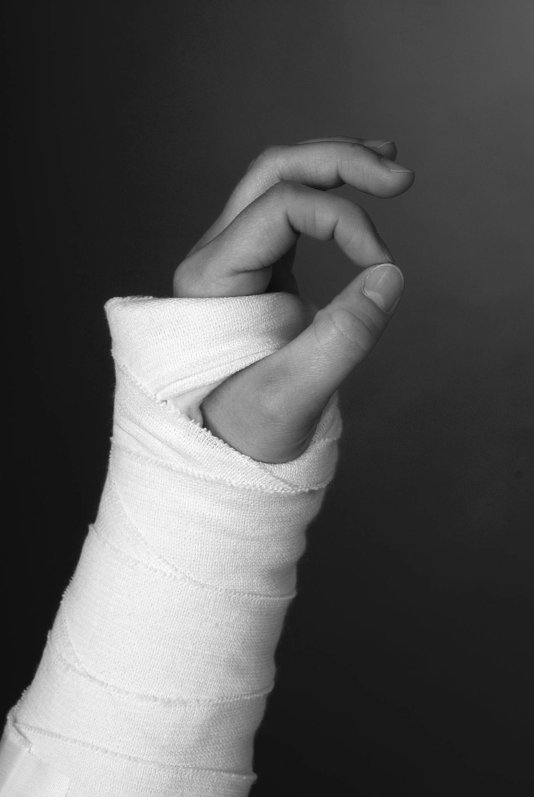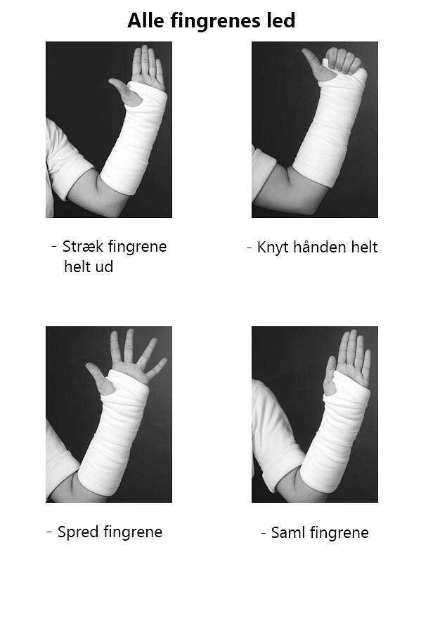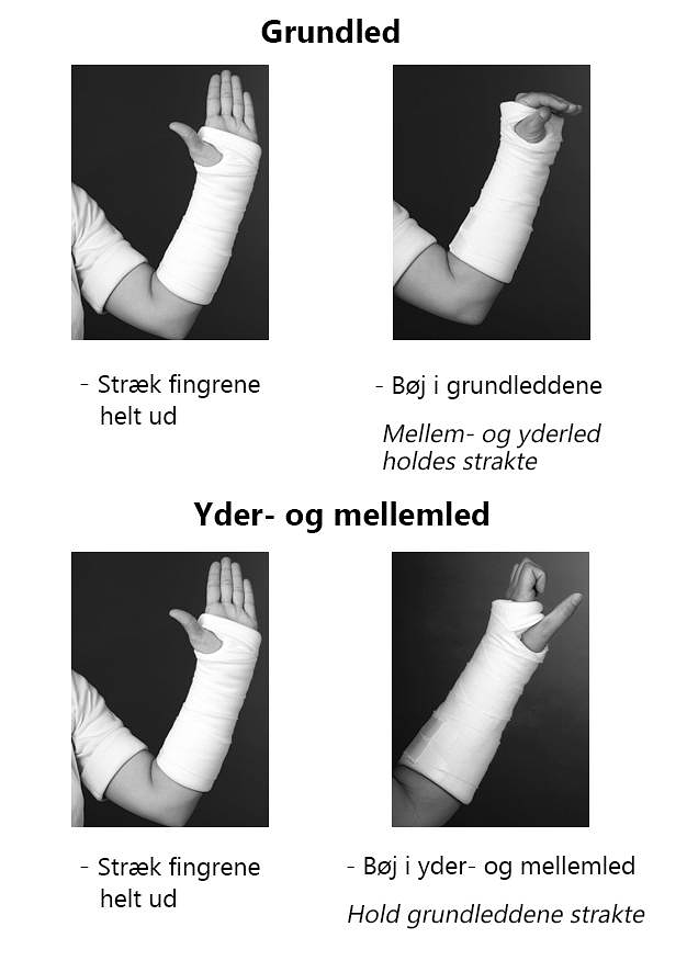 Trods bandage og skade er det vigtigt at holde hånden i gang. De led, som er frie af bandagen, skal du bevæge. Det der er inden for bandagen, skal du holde i ro.