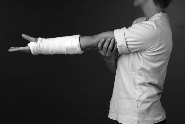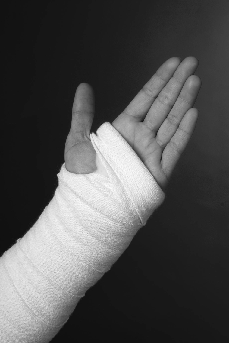 Du har fået en bandage på håndleddet og underarm.