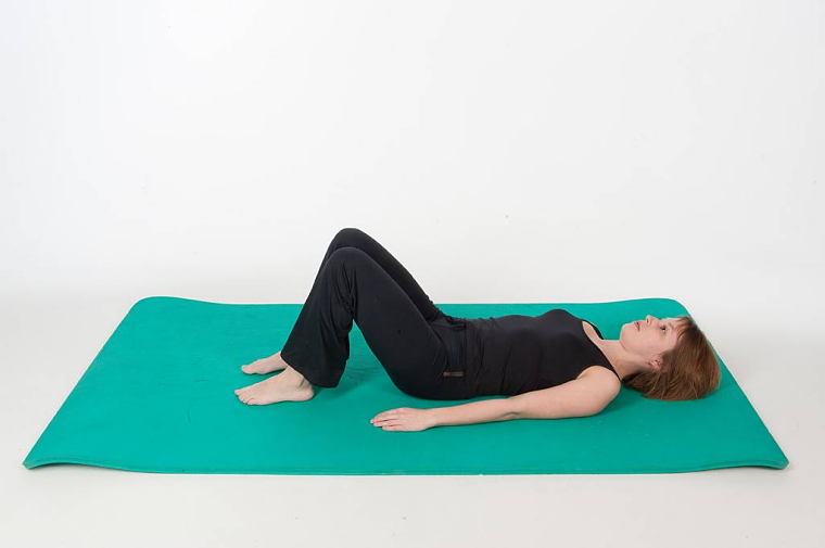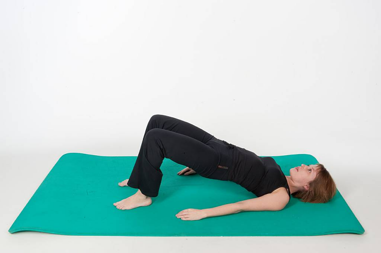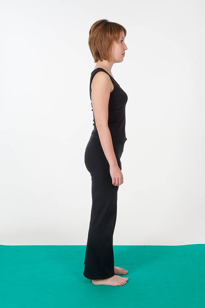 Træk samtidig skulderbladene sammen og pres skuldrene ned.
