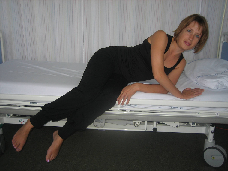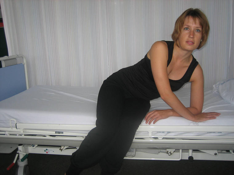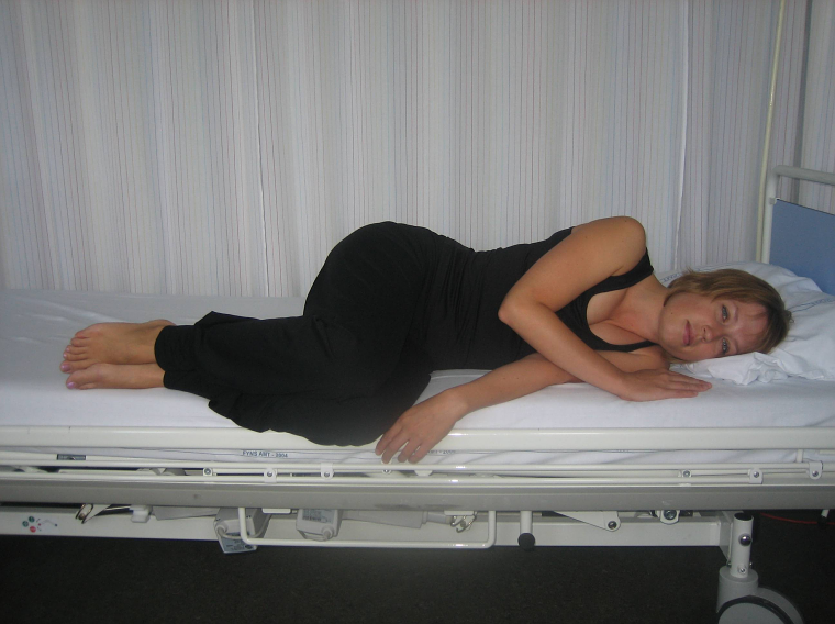 Når du skal i seng, skal du lægge dig på siden. Husk at tage fra med armene og læn dig godt forover.