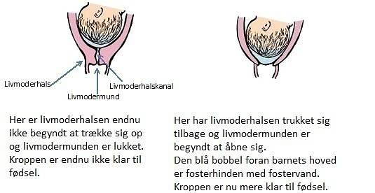 Når livmoderhalsen er afkortet, og livmodermunden er begyndt at åbne sig, kan man