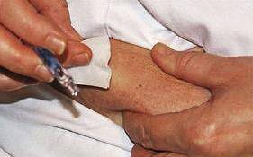 9. Stik kanylen ind med en vinkel på ca. 45 grader.
