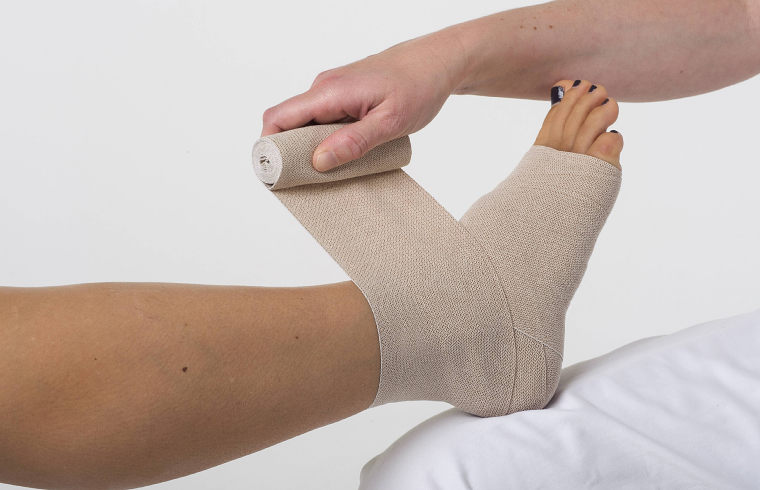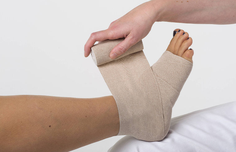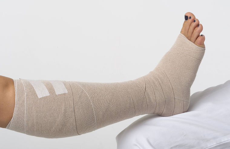 Benet skal være forbundet fra tæerne til 3 cm fra knæhasen. Bandagen skal anlægges som et hylster omkring benet og sidde fast. Efter nogle timer vil den have "sat" sig og føles mere behagelig.