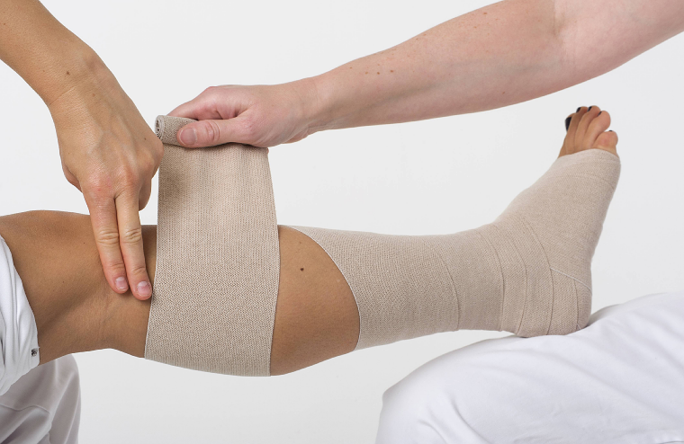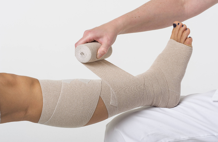 Under aktivitet arbejder musklen mod bandagen og blodet/væsken pumpes tilbage mod hjertet. Det er derfor godt at gå så meget man kan. Bandagen skiftes dagligt i starten, til vedligeholdende behandling kan bandagen ligge på i op til tre dage.