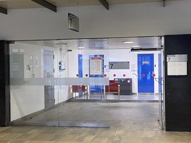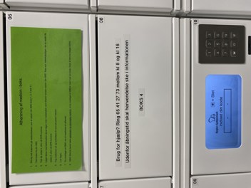Du finder pakkeboksene til venstre for Informationen i forhallen, gennem glasdørene, indgang 7.