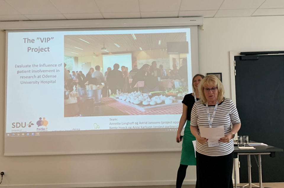 Patientrepræsentant Annette Langhoff og ph.d.-studerende Anne Wettergren Karlsson fik muligheden for at præsentere et projekt, de havde lavet sammen med FORSA-P's professor Astrid Janssens og docent Bente Hoeck i løbet af 2021.