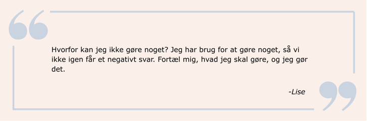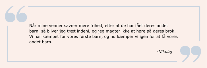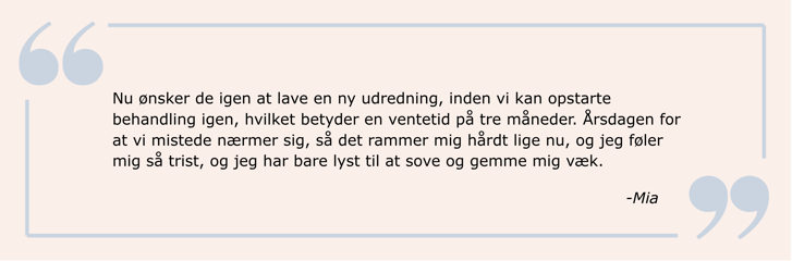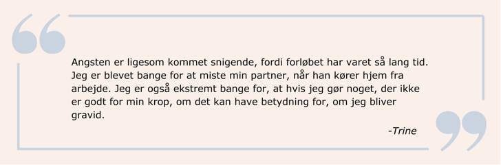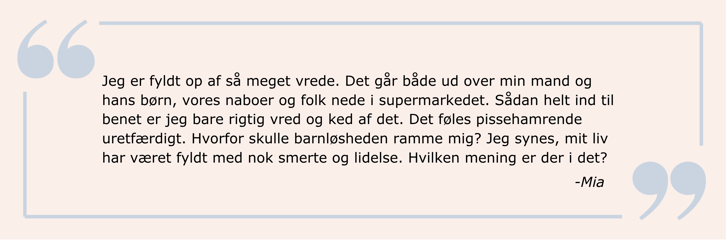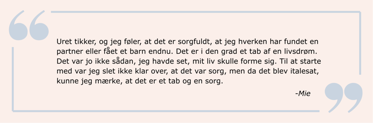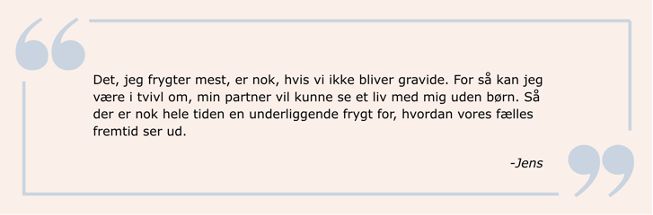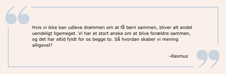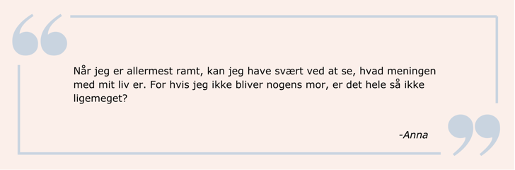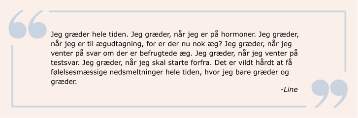 Barnløshed kan betegnes som en livskrise præget af en ukendt tidsramme og en dyb uvished om, hvor længe man skal være i behandling og leve under de her vilkår. Tankerne om, hvorvidt det nogensinde vil lykkes, skaber fortvivlelse hos mange.