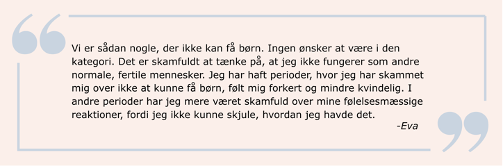 Fertilitetsbehandling kan være forbundet med skamfulde følelser - både i forhold til de kropslige undersøgelser, det psykiske i forhold til at føle sig utilstrækkelig eller forkert samt oplevelsen af social isolation.
