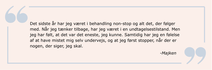 Det kan være en stor hjælp at vide, at andre står i samme situation som én selv. At opleve, at andre har de samme tanker og følelser, kan virke forløsende og lettende.