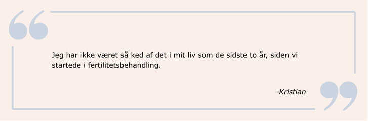 Fertilitetsbehandling er ofte forbundet med tab og kan ramme hårdt følelsesmæssigt. Flere beskriver, at tristheden oftere kommer på besøg, og at man kan blive ked af når som helst. For nogle føles det som om, tristheden aldrig helt forsvinder - hverken under behandlingen eller i ventetiden op til.