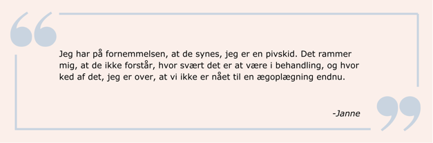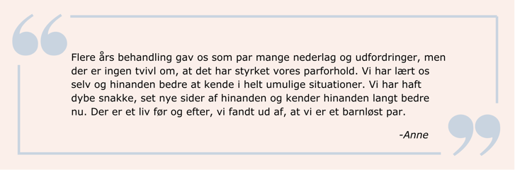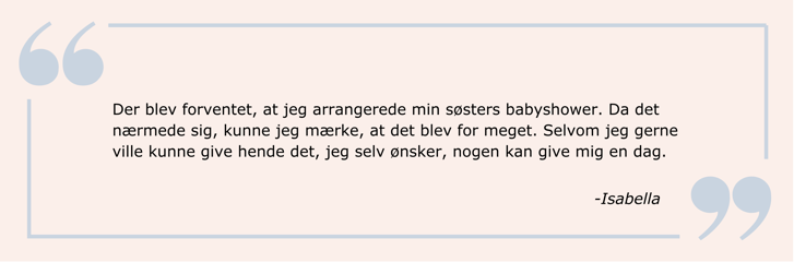 Her kan du læse om andres oplevelser med fertilitetsbehandling og om, hvordan den kan påvirke relationer og samspillet med omgivelserne.