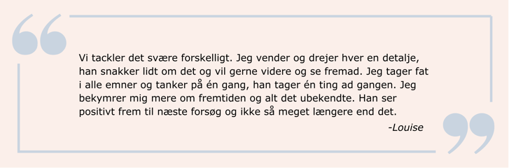 I fertilitetsbehandling reagerer vi ofte forskelligt, fordi vi kan have forskellige behov, erfaringer og måder at håndtere følelser og oplevelser på.