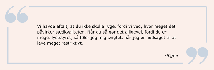 Gensidige krav om livsstilsændringer kan tydeliggøre, hvordan behandlingen påvirker hverdagen og relationen for begge.