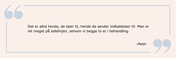 Ulighed kan opstå undervejs i fertilitetsbehandlingen, når den ene part tager mere ansvar (fx for behandlingen, medicin, logistik og ny viden), når den ene part har mere frihed (fx ikke er underlagt restriktioner eller medicinindtag på bestemte tidspunkter), når vi oplever forskellige grader af engagement, når vi har forskellige udgangspunkter, eller når vi ikke oplever os mødt ligeværdigt i behandlingen.