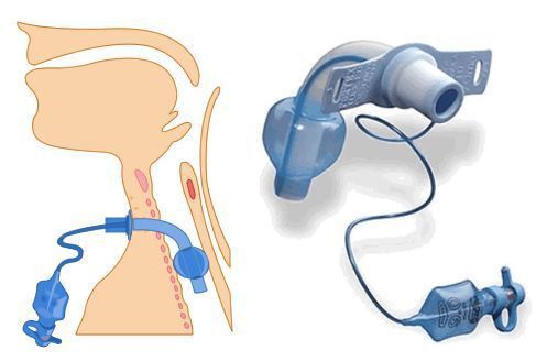 Trakealkanyle med ballon. Ballonen pustes op i forbindelse med operationen med henblik på at minimere risikoen for, at blod og sekret løber i lungerne. Ved en cuffet kanyle trækker patienten udelukkende vejret gennem trakealkanylen. Det betyder, at der ikke kommer luft forbi stemmelæberne, og tale er derfor IKKE muligt.