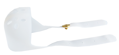 Fikseringsbåndet kaldes også for "nakkebånd" og er et blødt bånd med velcro i enderne, som holder yderkanylen på plads.